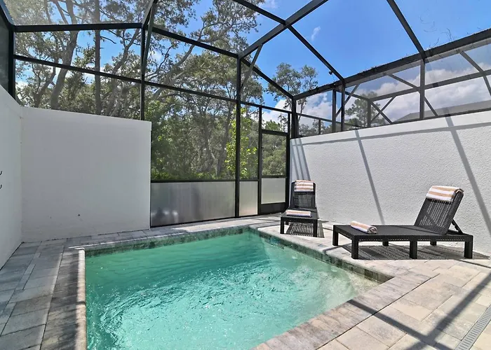 Located 4.7 km from Waters Edge Beach Club, Discover Paradise - New! Pool House Next To Disney Orlando villa entices guests to relax in a Jacuzzi.